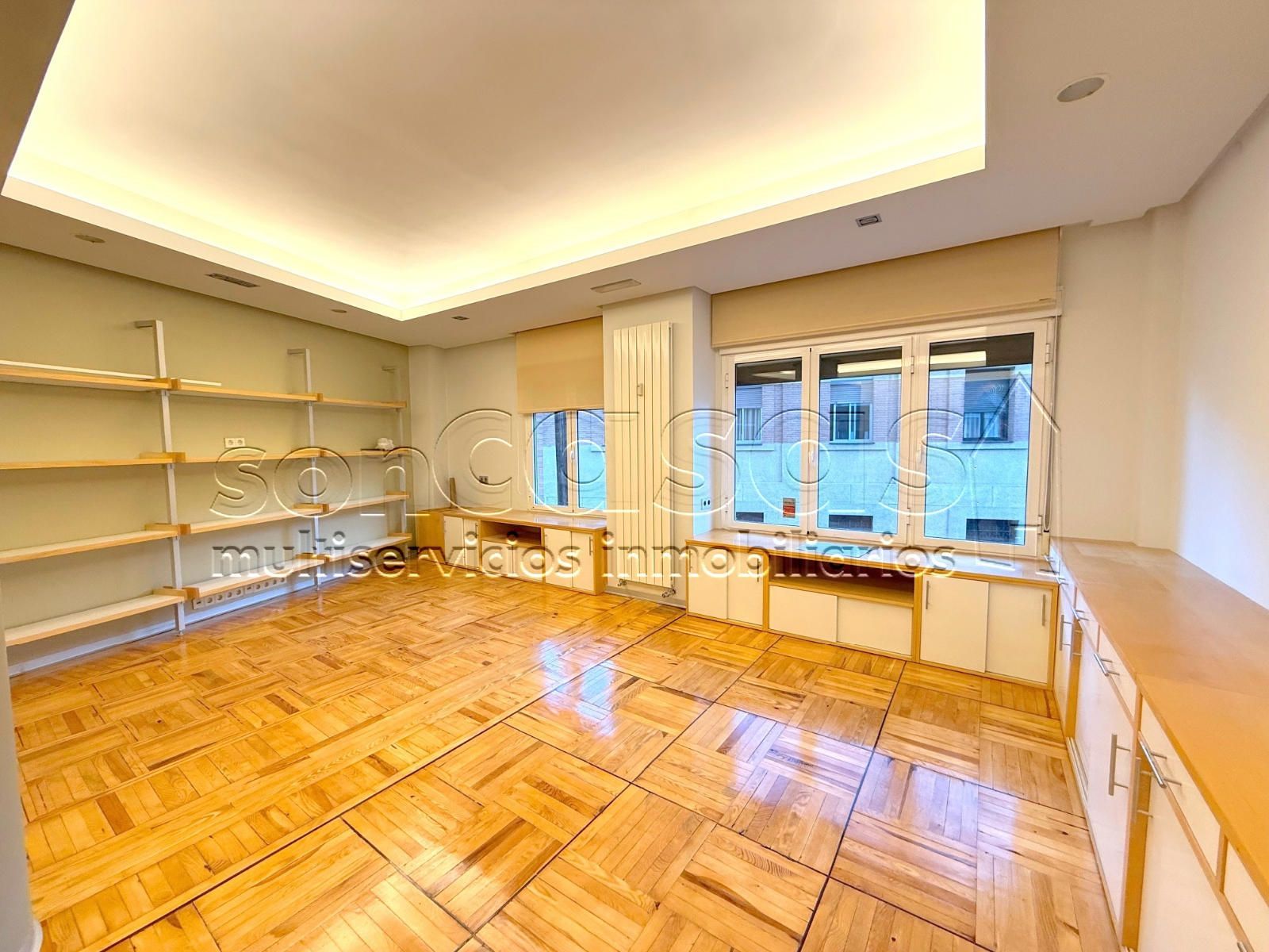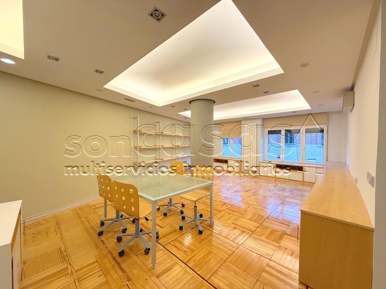Suelos de parquet, paredes lisas, grandes ventanales, aire acondicionado, calefacción central con contadores individuales.