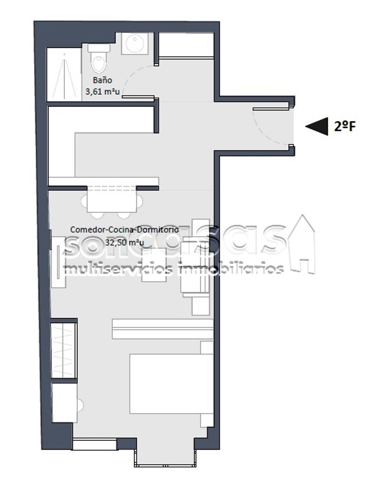 "SonCasas" les ofrece en venta un estudio de obra nueva, con cocina y baño totalmente equipados.